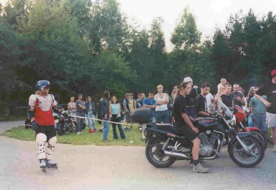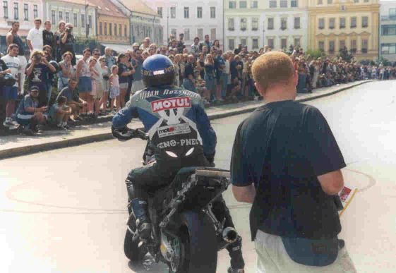 Tak a je to za náma (jako, že ročník 2002) Tak a je to za náma, ročník 2002 motosrazu Wims zdárně proběhl, nic výrazného se nestalo, Ti co přijeli odjeli a Ti co přišli, tak zase odešli. Jediné zranění, které jsem zahlédl, byl ubroušený palec jednoho bikera, ale tomu se to stalo ještě před návštěvou našeho motosrazu, takže náš lékař Pecan zde vystupoval v roli zachránce. Hned na začátek chci poděkovat všem účastníkům motosrazu za účast a doufám, že je zase v roce 2003 uvidím, myslím i Tebe "blondýno". V následujícím textu je krátká rekapitulace toho co se seběhlo, jako drobné osvěžení pro zúčasněné a pro Ty kteří nebyli, pozvánka na další ročník. Motosraz začal v pátek 23. srpna, jak bylo slibováno v novém areálu, v Třebíči - Poušově Podle všech zúčastněných tato změna místa byla jedině k lepšímu a nabídla návštěvníkům i organizátorům nové možnosti. Zejména okruh v soutěžní části areálu byl velikým oživením pro všechny sobotní soutěže. Pátek byl plně zaměřen na muziku z okolí Třebíčska, plus pardubická Vypsaná Fixa. Zde jak již bývá zvykem plně zazářil Cirkus Mrodry ublues a taky se nesmí zapomenout na vystoupení Permon Balet Superstar. Hudební program byl ukončen okolo jedné v noci a Ti co toho neměli dost pokračovali v tanečním stanu a u nonstop stánků s občerstvením. Sobota musela již plně uspokojit i ty nejtvrdší motorkáře. Ranní probuzení je hodilo přímo do víru soutěží. V 10.00 začala jízda zručností, na kterou navázali dvě kola vyřazovací soutěže "bazén". Ta se pravděpodobně dosti zalíbila, takže do vyjížďky bylo o zábavu postaráno. Co se týče soutěže "bazén", tak ještě jedna drobná vsuvka, Pače s Bambusem pozdravují Leonu. Z vyjížďky, která se trochu roztrhla, se zamířilo rovnou na třebíčské Karlovo náměstí, kde proběhla kaskadérská show Milana Rozsypala. A tam se děli věci, takovou parádu si nenechalo ujít ani civilní obyvatelstvo, takže na náměstí bylo tolik lidí, že to i pořadatelům vyrazilo dech. Po návratu do areálu začal maratón soutěží a hudebních kapel, který skončil opět okolo jedné v noci. Soutěže probíhaly v klasickém duchu motosrazu Wims, takže se začalo taháním Chevroletu, následovali další jako přetlačovací stolice, o nejhezčí motorku a hlavně novinka, závody in-line za motorkou Tato soutěž zaskočila mnohé, včetně pořadatelů, protože všichni do toho šli po hlavě, takže se na okruhu jezdilo rychlostí přesahující 40 km/h. Ale stálo to za to, vítěz vyhrál pětikilo, podobně jako u ostatních soutěží, pořadatelé odepsali dvoje totálně zbroušené in-line brusle a zábava valila dál. Mezi tím běžel na podiu nepřetržitý program, který zabavoval ty, kterým nic neříkali soutěže na okruhu. Vrcholem večera byla miss mokré tričko, které se zúčastnilo 9 dívek, s nejrůzněji vyvinutým poprsím. Prostě hlavní výhra 150 USD lákala mnohé, i ty co je jen třeba poštípali včely.. A to se už chýlil konec, kapely Faith no more revival, Wohnout a Boron rozpálily návštěvníky a i lesbo show přiložilo pár polínek do ohně. Závěr opět proběhl pro nespavce v tanečním stanu a ráno následoval odjezd do trvalých a přechodných bydlišť a boj pořadatelů s hordou kelímků. Tak to byl motosraz Wims 2002, ještě jednou dík všem co tam byli